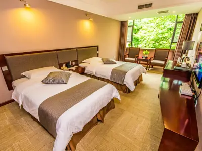 Dit hotel ligt aan de voet van de Emei‑berg en is een fijne uitvalsbasis voor wie de berg en de omliggende tempels wil verkennen. De kamers zijn eenvoudig maar comfortabel, en de ligging vlakbij de Baoguo‑tempel maakt het ideaal voor reizigers die vroeg willen starten met een trekking of een bezoek aan de berg. Dankzij de rustige omgeving kun je hier na een dag vol indrukken ontspannen en genieten van de natuur rondom het hotel.