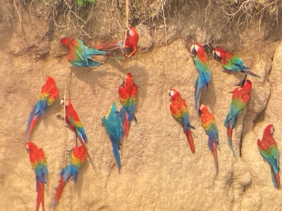 We worden vroeg wakker midden in de jungle. Vlak voor zonsopgang gaan we naar de klei likplaats om ara’s, papegaaien en parkieten te zien die hier mineralen verzamelen. Na het ontbijt trekken we opnieuw het regenwoud in, op zoek naar wilde zwijnen, tapirs en apen. Met wat geluk kruist zelfs een jaguar ons pad. Op de terugweg stoppen we bij de waterval Cascada el Gato, waar je kunt afkoelen in het water. In de middag keren we terug naar de lodge en is er tijd om te ontspannen in een hangmat met uitzicht op de Tambopata-rivier. Voor het diner maken we nog een boottocht langs de oevers om kaaimannen en capibara’s te spotten in het avondlicht.