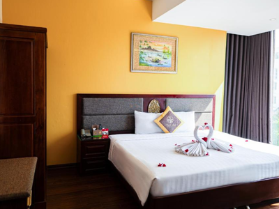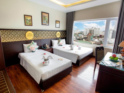 Dit in het centrum gelegen hotel heeft ruime kamers die beschikken over een moderne badkamer, airconditioning, thee- en koffiefaciliteiten en voor de liefhebbers een minibar. Verder is het centrum op steenworp afstand, waardoor je te voet de stad kunt verkennen om enkele hoogtepunten te bezichtigen. Daarnaast biedt het hotel een sauna en massage ruimte, in de avond kun je in het restaurant aanschuiven voor een Vietnamees diner.