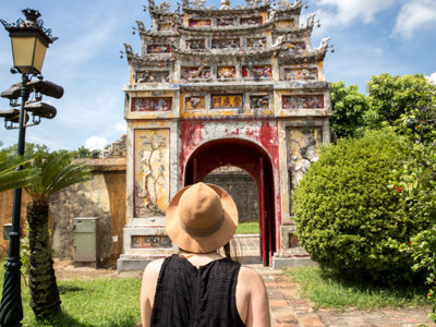Met de nachttrein arriveren we in Hue, de voormalige keizerlijke hoofdstad van Vietnam. Het is tijd om de schatten van deze stad te ontdekken. Hue is een unieke mix van levendige straten en serene landschappen, vol met tempels, bunkers, tombes en pagodes. Onze fietstocht leidt ons langs de meest opmerkelijke plekken van Hue, waaronder de Keizerlijke Citadel. We bezoeken ook de Verboden Paarse Stad, die bijna volledig werd verwoest tijdens het Tet-offensief in de Vietnamoorlog. De overwoekerde ruïnes en bomkraters geven een indruk van de impact die de oorlog op dit land had. Na de tocht is er volop tijd om te ontspannen in een café of restaurant. Hue staat bekend om de beste keuken van Vietnam, beïnvloed door zowel het keizerlijke verleden als het sterke boeddhistische erfgoed.