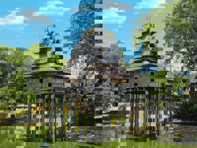 Na de lunch aan het schilderachtige Soui Lake, ook wel het “Savannakhetse oceaan” genoemd, reizen we verder naar het dorp Taleo. Hier staan de resten van een oude tempel die in 1969 werd getroffen door bombardementen. Eén gebouw bleef gespaard en toont kleurrijke volkskunst en verhalen over het leven van Boeddha. Tot slot bezoeken we een meer in Don Daeng, waar heilige softshell-schildpadden leven. Volgens lokale tradities mogen alleen mannen het kleine tempeltje op het water betreden.