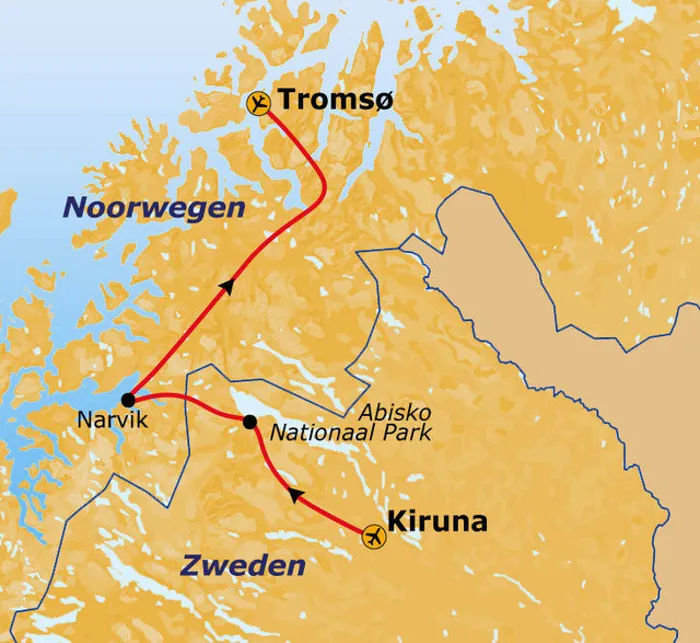 Vandaag is het zover, het begin van een winterse reis boven de poolcirkel door Zweden en Noorwegen. Voor meer informatie over de vlucht verwijzen wij naar het kopje 'vluchtinfo'. Na aankomst op de luchthaven van Kiruna rijden we naar onze accommodatie waar we de komende nacht zullen verblijven. Kiruna ligt zo’n 200 kilometer ten noorden van de poolcirkel en maakt deel uit van Sápmi, het traditionele leefgebied van het inheemse Sámi-volk, dat zich uitstrekt over meerdere landen in Noord-Europa.