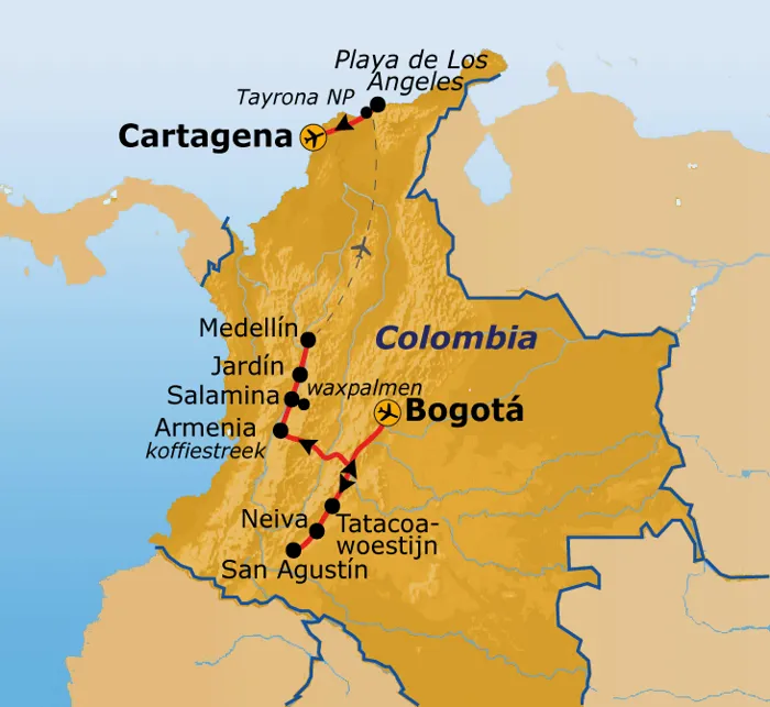 Tijdens deze avontuurlijke rondreis door Colombia bezoeken we het land van de meest aardige en gastvrije mensen van Zuid-Amerika. Laat je overweldigen door de variatie en tegenstellingen van het land, zoals het Andesgebergte, de historische steden, de koffiestreek en de prachtige Caribische stranden. Salsa en andere typische Colombiaanse muziekstijlen als cumbia en bambuca vergezellen ons de hele reis. Colombia is één van Zuid-Amerika’s best bewaarde geheimen. Ervaar zelf hoe het is in dit kleurrijke en levendige land!