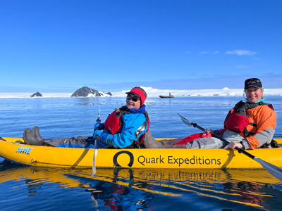 De schepen zijn uitgerust met zeekajaks. Wie dit bij boeking aangeeft, kan tijdens de dagen dat we bij het Schiereland zijn – als het weer het toelaat – de excursies per kajak doen (niet bij de reissom inbegrepen). Zodiacs zijn weliswaar snel en wendbaar, er is wél een motor voor nodig. Tijdens het kajakken ervaar je de stilte pas écht. Geruisloos peddel je tussen ijsbergen en langs gletsjers en kun je de pinguïns op de ijsschotsen heel dicht benaderen.