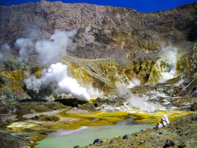 In ongeveer een half uur rijden we naar Wai-O-Tapu Wonderland of Waimangu Volcanic Valley. In Wai-O-Tapu maak je een wandeling langs kraters, kokende modderpoelen en de c, een prachtig gekleurd meertje met een hoge thermische activiteit.