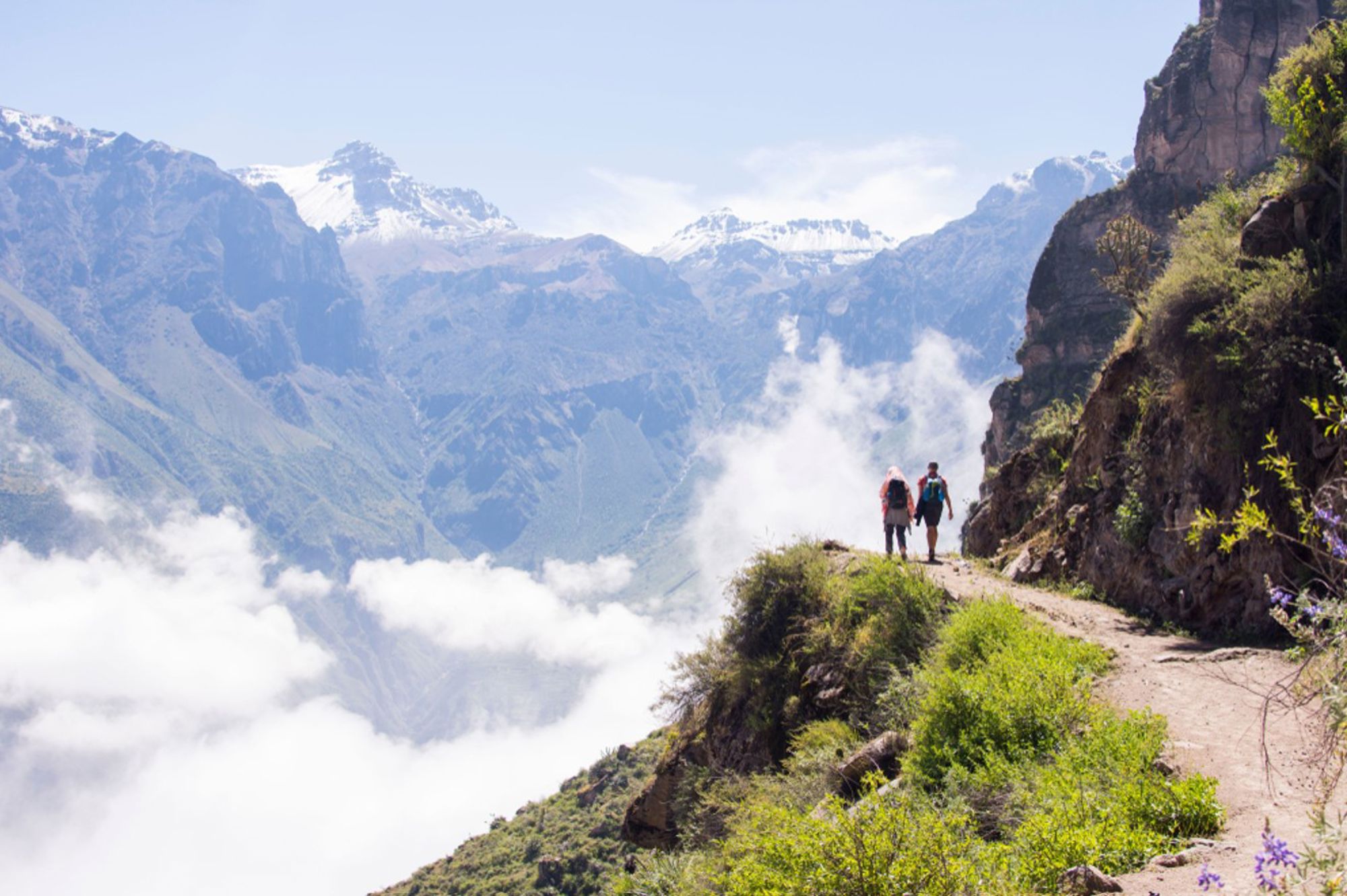 - Wandelen en Trekking: De Colca Canyon is ideaal voor wandelaars van verschillende niveaus. Je kunt meerdaagse trekkings ondernemen die je meenemen langs traditionele dorpen, overhangende pre-Inca terrassen, en naar de bodem van de kloof. Het is aan te raden om een gids in te huren voor de meer uitdagende routes. De meeste tochten vertrekken vanuit het dorpje Cabanaconde.