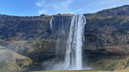 De zuidkust van IJsland voelt als één grote ansichtkaart. We reden langs hoge kliffen, uitgestrekte lavavelden en ruige kustlijnen. Bij Skógafoss stonden we recht voor een gigantische muur van water die met geweld naar beneden stort. Even later bezochten we Seljalandsfoss, waar je achter de waterval langs kunt lopen. Met een regenjas aan en glibberend over het pad liepen we achter het vallende water langs, een superleuke en unieke ervaring. Ook Reynisfjara, het zwarte strand met basaltzuilen, maakte indruk. Zelfs met keiharde wind bleef het landschap spectaculair. Dit stukje kust laat perfect zien hoe ruig en dramatisch de natuur in IJsland kan zijn.